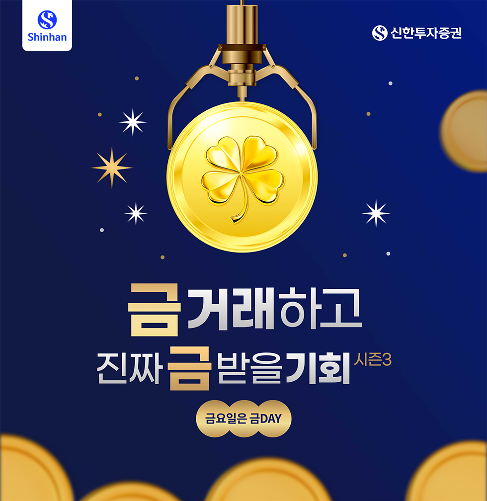 - 해당 이벤트는 신한투자증권에 금현물 거래가 가능한 계좌를 보유한 고객이 참여 가능하며, 이벤트 기간 내 신규 계좌개설 후 금거래 신청 및 기존 금거래 신청 고객 모두 대상에 포함합니다.